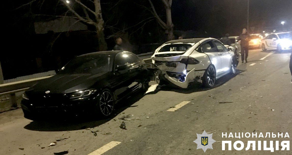 За інформацією правоохоронців, зіткнулися автомобілі Mitsubishi, BMW, Tesla та Volkswagen