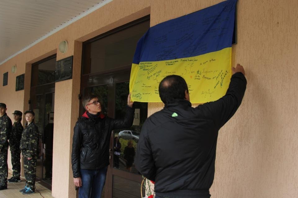 Меморіальні дошки відкрив батько Олега Довбні та син Степана Усса