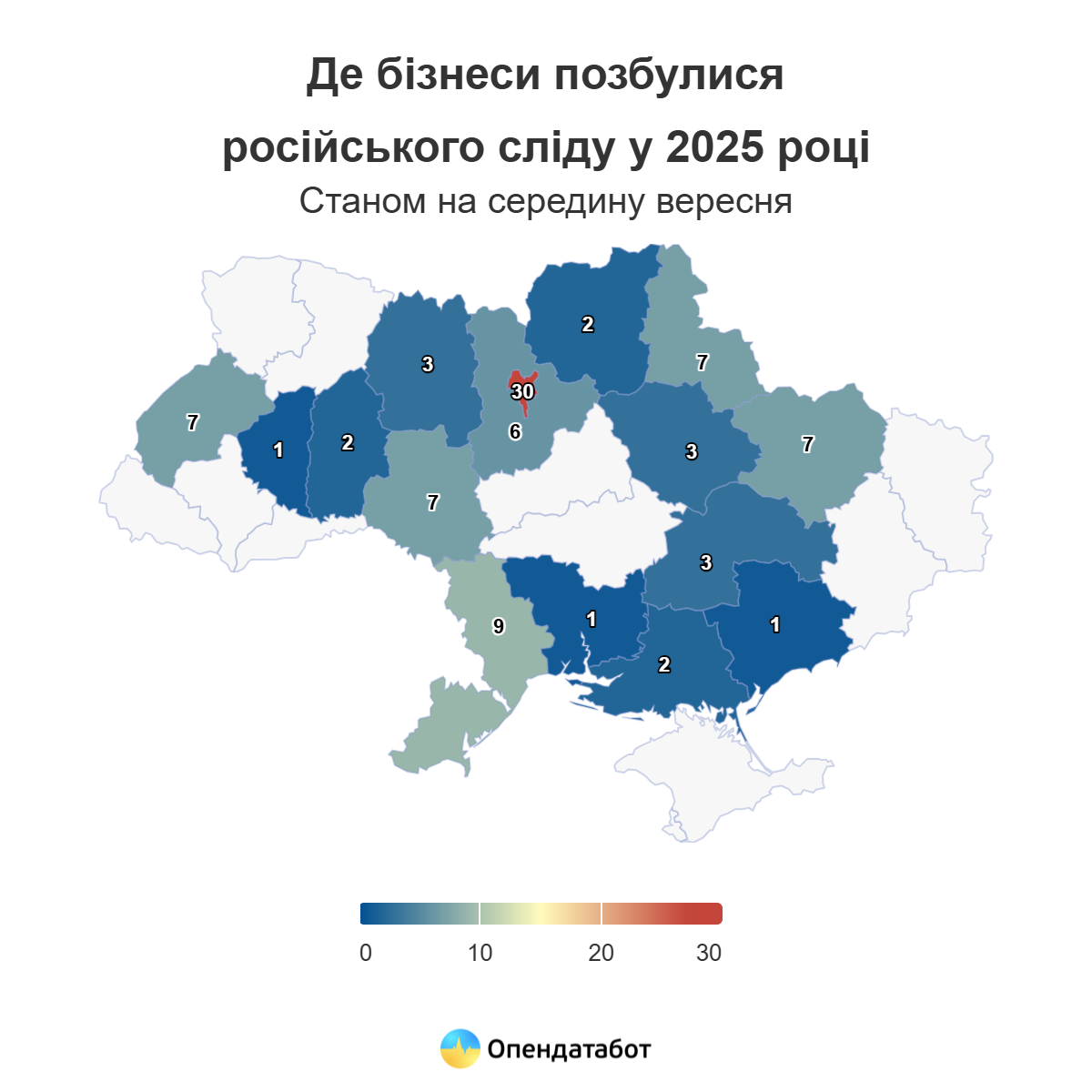 Від січня 2025 року 91 компанія в Україні позбулась власників з РФ. Найбільше — у Києві, три працюють на Полтавщині. Частина таких бізнесів бере участь у державних тендерах