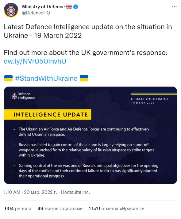 Як заявляють у відомстві, здобуття контролю на повітряним простором в Україні було однією з головних цілей РФ у перші дні вторгнення