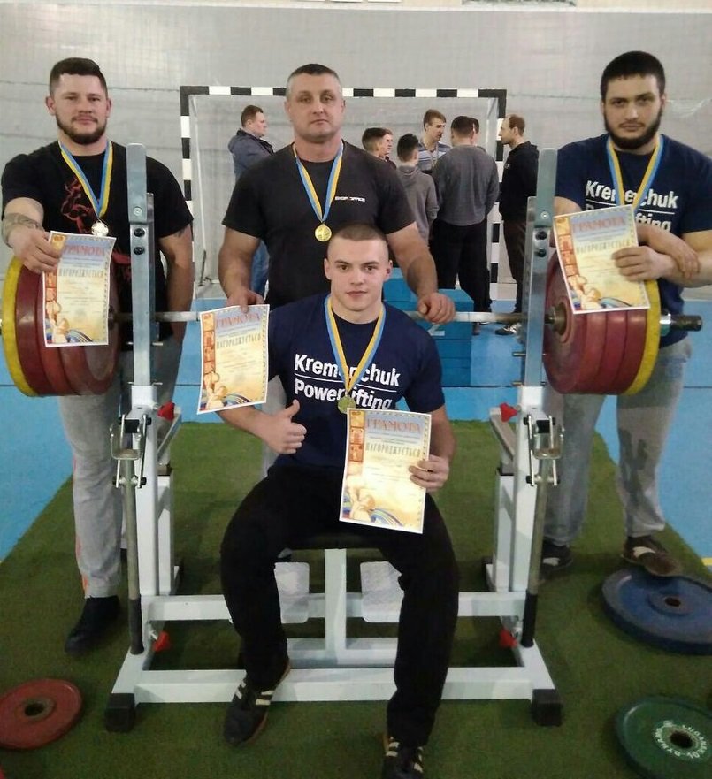 Кременчужани в турнірі з багатоповторного жиму (лежачи) на п’єдесталі сильніших (на фото Невмивака посередині)