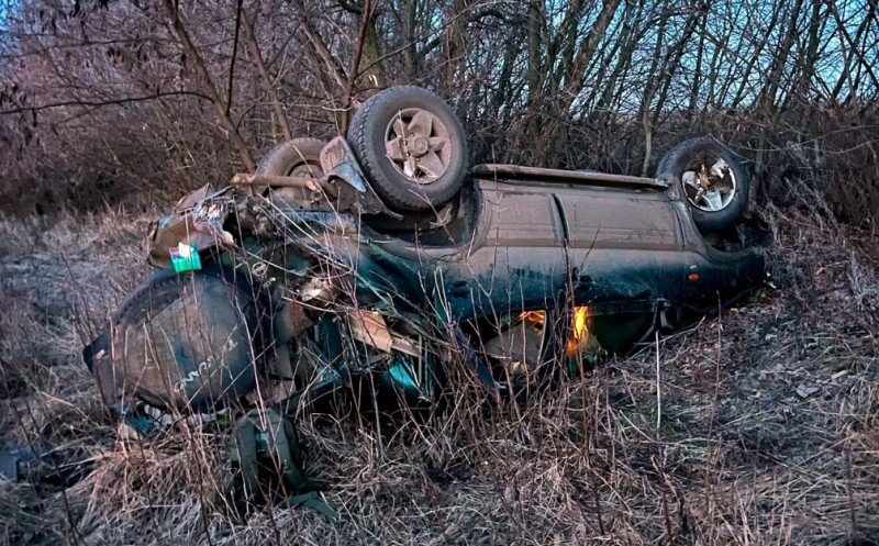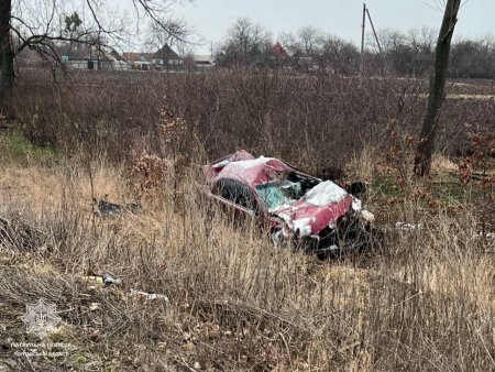 Автомобіль з'їхав у кювет та зіткнувся із земляним насипом