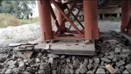 Під деякими металевими опорами мосту є дерев'яні дошки. Крім того, цементні основи, на яких тримаються опори, нещільно прилягають до землі
