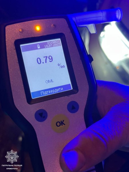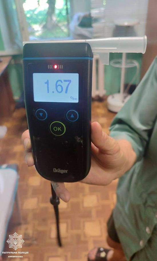 Увечері 30 жовтня на в Кременчуці патрульні виявили водійку, яка мала понад 2,4 проміле алкоголю, що більш ніж у 12 разів перевищує допустиму норму