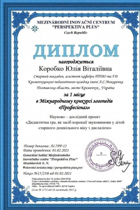 Юлія Коробко та Олександра Івко представили науково-дослідний проєкт на тему «Дидактична гра як засіб корекції звуковимови у дітей старшого дошкільного віку з дислалією»
