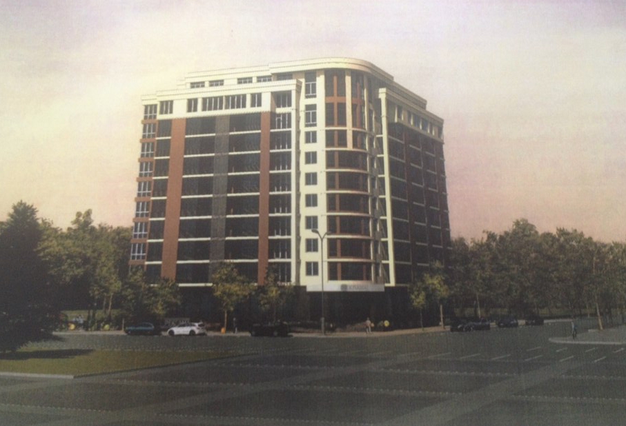Первый проект здания на площади Победы не утвердили в мэрии и заказчики переделали его, добавив витражные окна, изменив на более округлые формы здания, мансарду и добавили детскую площадку