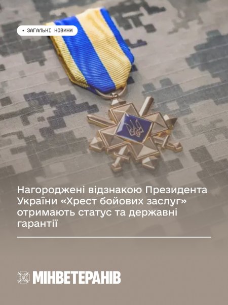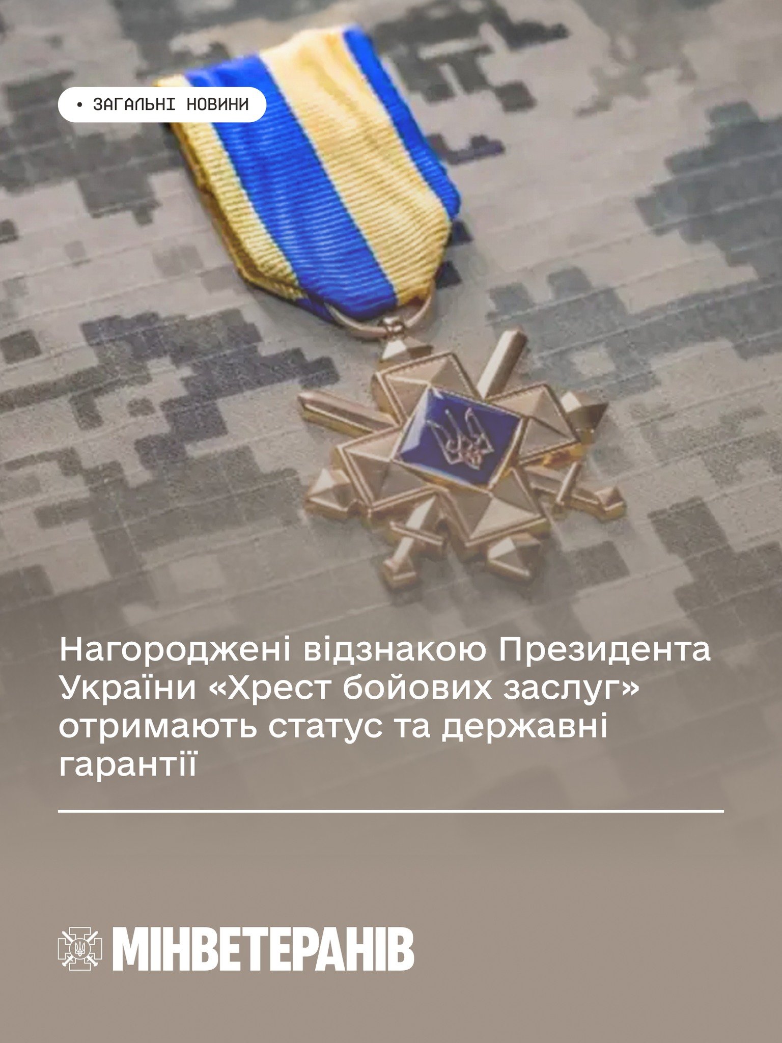 Верховна Рада прийняла закон щодо визнання осіб, яких нагороджено відзнакою Президента України «Хрест бойових заслуг», особами, які мають особливі заслуги перед Батьківщиною