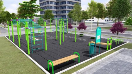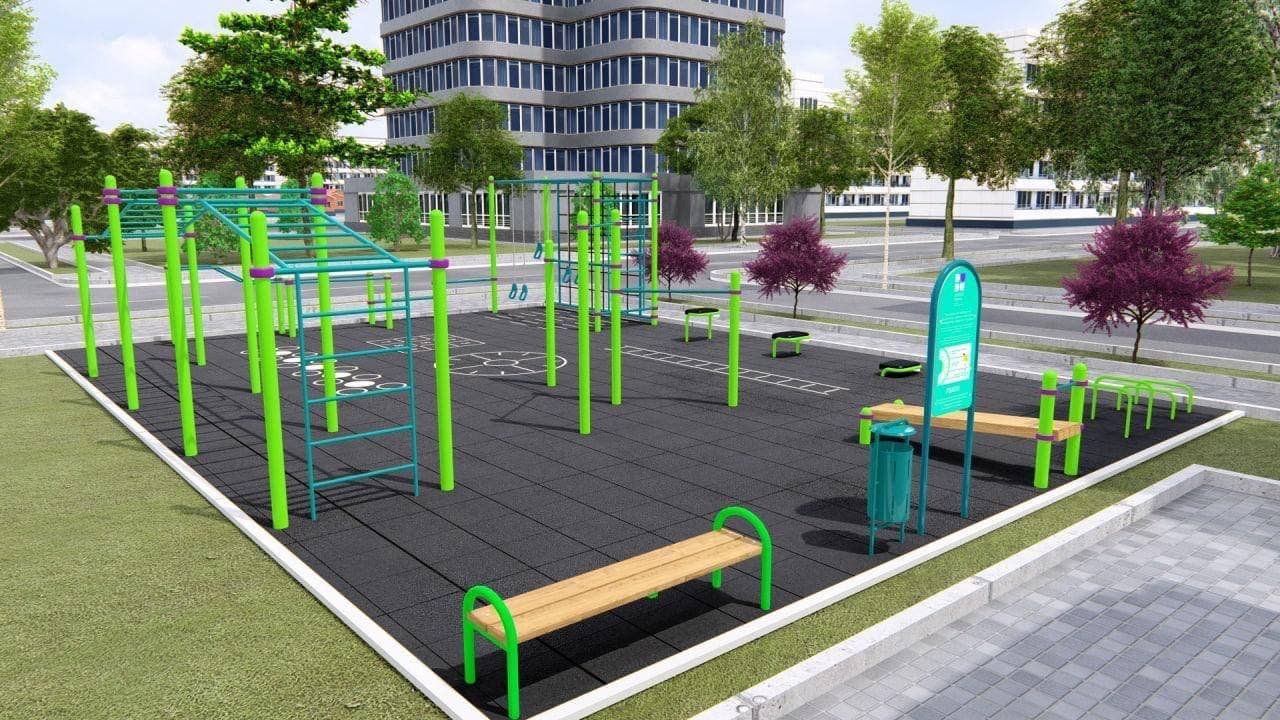 На майданчику встановили тренажери для всіх груп м’язів: перекладини, бруси, сходинки