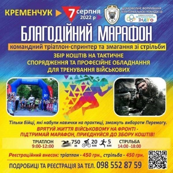 Опубліковано вКременчук У Кременчуці відбудеться марафон на підтримку військових by Альона Душенко31-07-2022, 16:02 Долучайтеся до підтримки українського війська