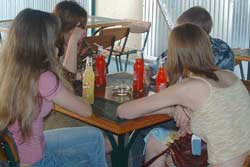В двух шагах от магазина заходим “попить чаю” в известное кафе “Селянка”, прокуренное и полное пьяных посетителей. Оказалось, что молодёжь заходит и сюда. Заказав за барной стойкой и без проблем получив по поллитра пива, 15-летняя девчушка и её 17-летний спутник уселись за столик. Уточнив их возраст, страж правопорядка обращается к барменше с тем же вопросом, что и в магазине. Оказывается, что на разливе тоже не знают, что пива детям не положено. И, вообще, барменше не известно – дети это или нет, ведь дата рождения на лбу не написана. Похоже, ей даже в голову не приходит спросить, сколько лет ребенку.
