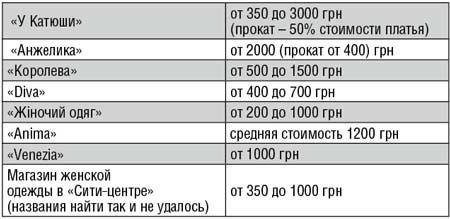 Очевидно, меньше всего проблем с покупкой платья. Тут все понятно: пришел, померил, понравилось – купил. В магазинах цены на платья очень разные: от 250 до 4 тысяч гривень. Например, в одном магазине платья стоят от 350 до тысячи, в другом – от двух до трех тысяч гривень.