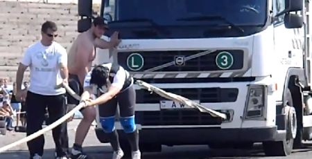 Нина Геря тянет 14-тонный грузовик