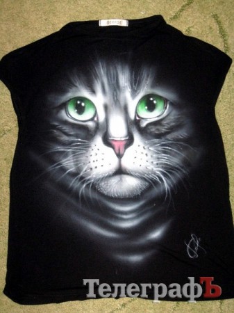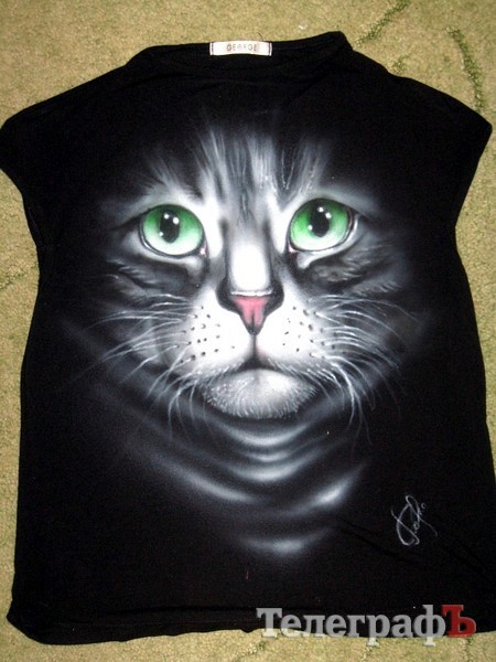 Жене Яне на футболке художник изобразил красивую кошачью морду
