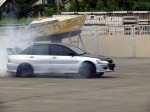 Комсомольчанин Максим на Mitsubishi Lancer Evolution во время соревнований наехал на люк и порвал покрышку
