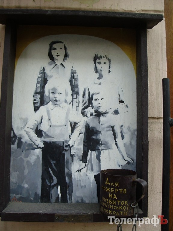 «Для пожертв на розвиток української демократії» - такое дивная конструкция в центре. Самое интересное, что деньги собирают. :)