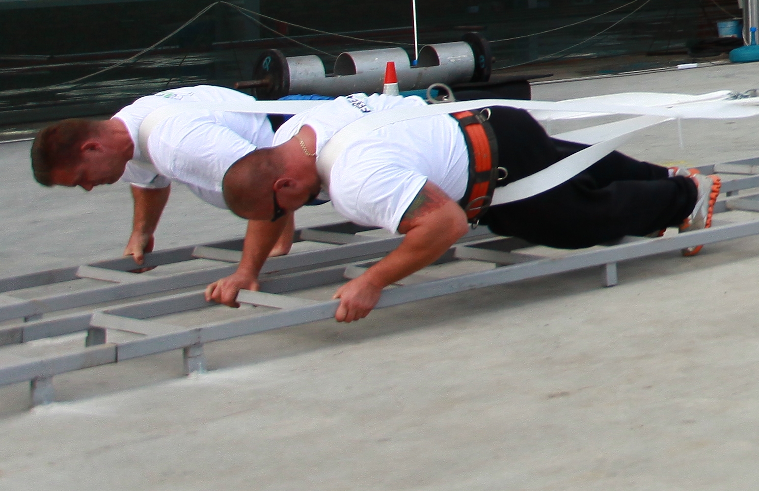 В Комсомольске, 17 октября, восемь украинских силачей во главе с Василием Вирастюком установили рекорд Украины, протащив самый тяжелый в мире карьерный самосвал "Сaterpillar" на 5 метров за 2 минуты 30 секунд.