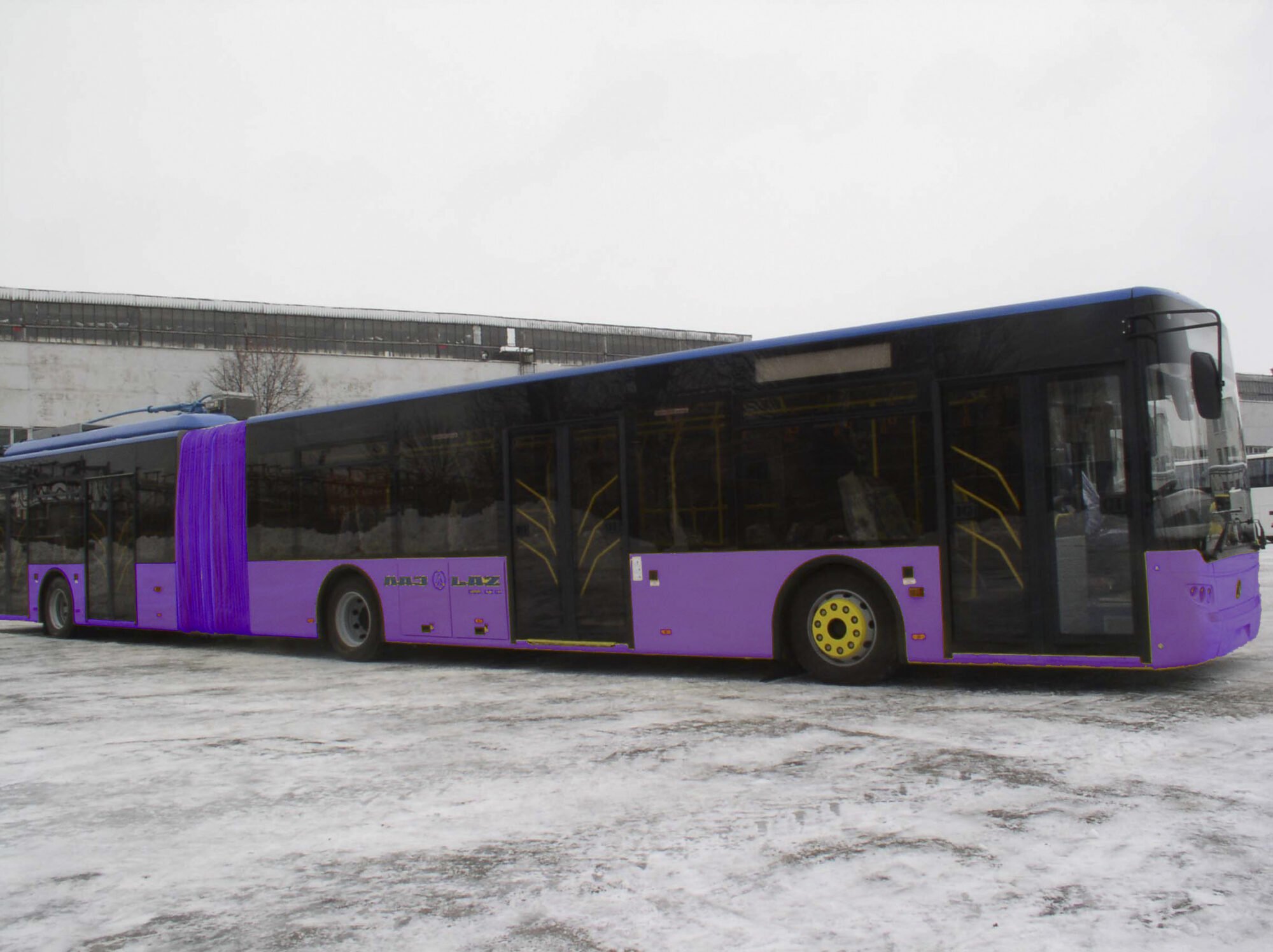НА ФОТО: Вот где-то такие троллейбусы будут ездить по Кременчугу. На сайте производителя машин-«гармошек» фиолетового цвета мы не нашли – поэтому сами «покрасили» троллейбус в правильный цвет
