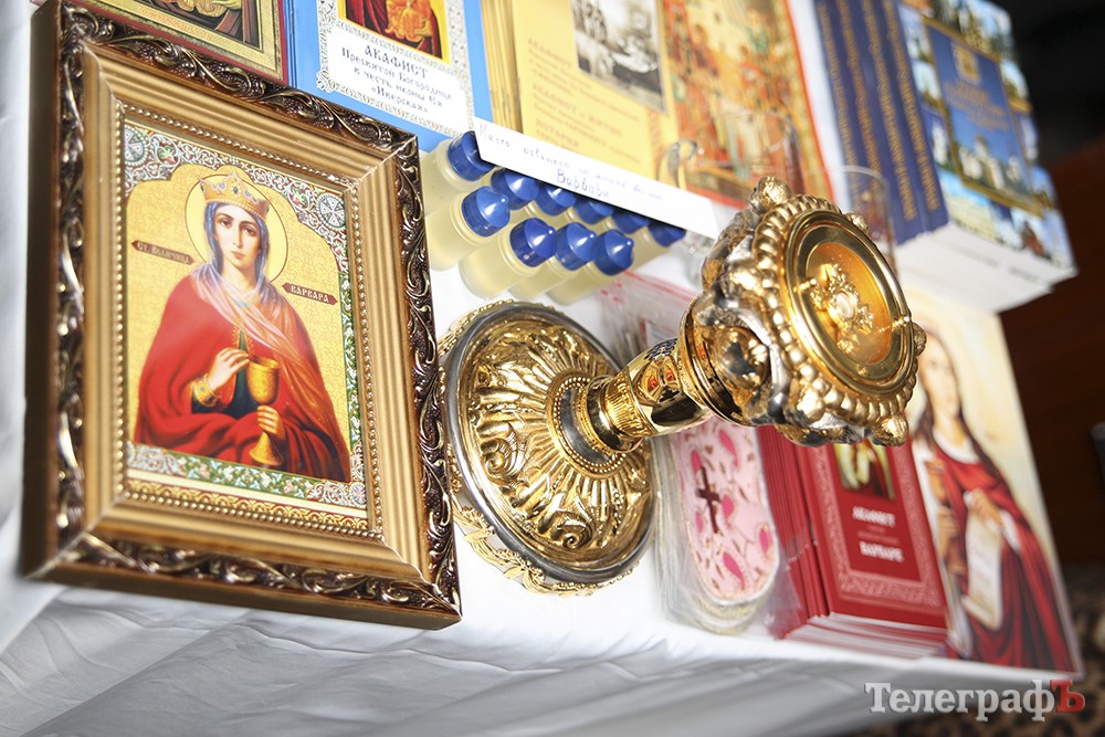 В этом году в Кременчуг из Свято-иверского Одесского мужского монастыря участники выставки-ярмарки привезли мощи Святой великомученицы Варвары, которой молятся о сохранении от внезапной смерти без покаяния и Святого Причащения.