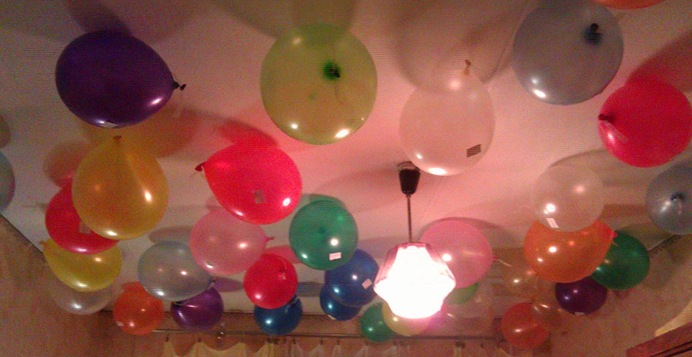 На входной двери моей комнаты её встречал плакат с надписью: "Я тебя люблю за...", а за дверью ждали надутые воздушные шарики, которые были как на полу так и на потолке, на каждом из которых была наклеена небольшая записочка с продолжением. А на стуле сидел мишка и держал в руках красное сердце, в котором были еще порядка 30 таких записочек. В общей сложности их насчитывалось 60 штучек=)