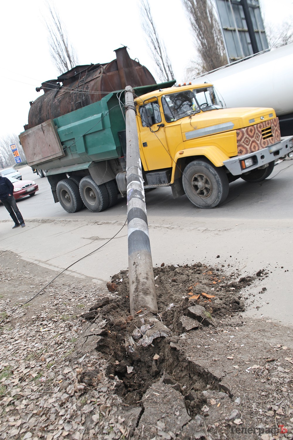 В Кременчуге при выезде с Первой Занасыпи в районе железнодорожного моста на машину «КрАЗ», что перевозила в кузове смоловарку, упал столб. Происшествие случилось сегодня, 1 марта, около 11 часов дня.