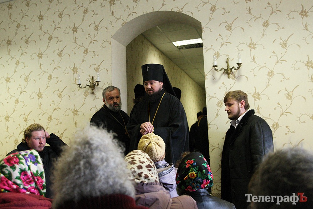 Разбираться в конфликте в Кременчуг приехала комиссия во главе с архиепископом Житомирским и Новоград-Волынским Никодимом, архиепископом Кировоградским и Новомиргородским Иоасафом и епископом Обуховским Ионой. Во дворе епархии их встретили прихожане Свято-Троицкой церкви.