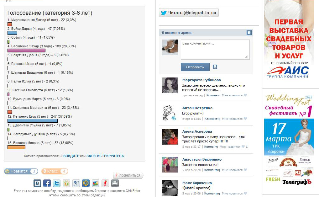 На сайте telegraf.in.ua проходил конкурс "Моя мама самая красивая". Мы получили 60 заявок на участие. Все рисунки были очень разными, как по технике так и по сложности исполнения.