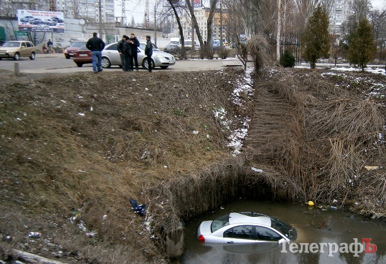 В Кременчуге возле Троицкой церкви автомобиль слетел в канал с водой. Об этом в редакцию "Телеграфа" сообщил кременчужанин Константин. По его словам, автомобиль "Hyundai Accent" ехал с Центра по улице Красина.