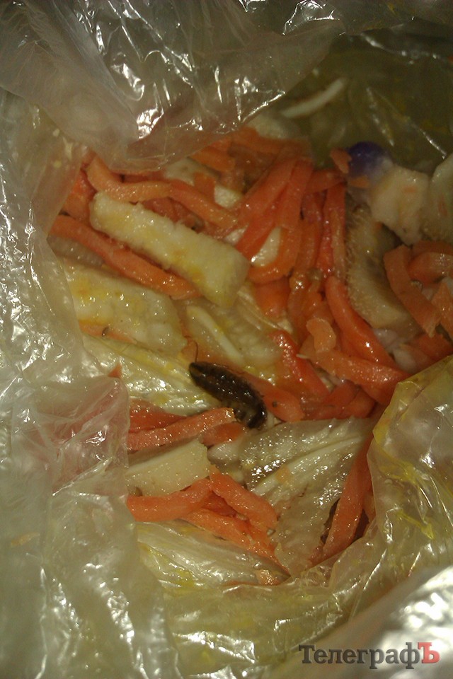 – Я взагалі думала, що не виживу! У мене від огиди все обличчя вкрилося червоними плямами, такі ж плями пішли по тілу. Мене трусило і знудило, бо на дні контейнеру я побачила великого таргана – товстий такий, вгодований мужчина, мертвий, маринований. Ви розумієте, я побачила його, коли вже з’їла майже все! Це був салат із моркви по-корейськи. Я щойно купила його у магазині у нас на Раківці, прийшла додому і почала їсти. А коли майже все з’їла, побачила те чудовисько (на фото). Ви не уявляєте, як це огидно! Коли оговталась від нудоти, ми одразу пішли до магазину. Продавщиця чек мені не дала, там взагалі чеків не дають, але вона мене впізнала, повела до старшого продавця. Мені сказали, що повернуть гроші, дев’ять гривень. Я відповіла, що цього замало, я хочу, щоб у моїй присутності все корито з тією морквою викинули на смітник, бо я маю переконатися, що людям цю гидоту не продаватимуть. Ніхто нічого не викинув, навіть не вибачились. Коли ми сперечалися зі старшим продавцем, поруч сидів власник магазину. Він взагалі не звертав на нас увагу, телефонував кудись, розмовляв, коли я спробували до нього звернутися, не відреагував. Потім мені сказали, що власник «крутий» чи «блатний», у нього тут все, як кажуть, «схвачено». Я пролежала дві доби, весь час нудило, їсти не могла. Ви розумієте, що таргани – це ж носії різних інфекцій. А на днях зайшла до магазину спеціально подивитися – і побачила, що там торгують тією ж морквою! А де, в яких умовах вона зроблена, якщо від неї навіть таргани дохнуть?!