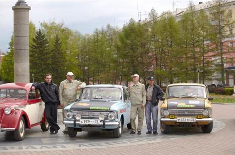 Боевой «412-й» (в середине) с братом-близнецом (справа) и прадедушкой «401-м» (слева) перед стартом от нулевого километра в Барнауле.