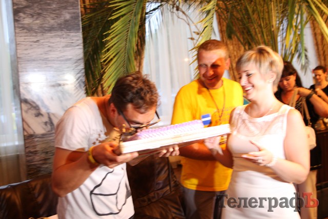 Стоит отметить, что такой подарок очень удивил лидера группы "С.К.А.Й" Олега Собчука и он сразу же попробовал торт на вкус.