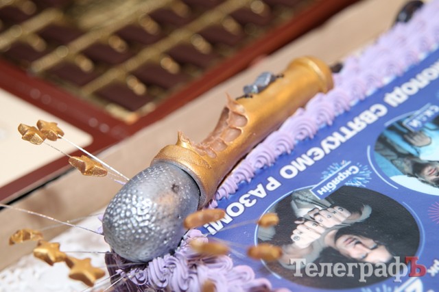 - Фото-торт весит 2,5 кг. Он будет вручаться артистам, гостям нашего города. Это подарок от города и фирмы. Мы социально-ответственны и не можем остаться в стороне от Дня молодежи и приготовили такой подарок. Торт изготовлен из белого бисквита с фундуком, вишней и сгущенкой, а микрофон сделан из мастики, - сказала Людмила Боталова.