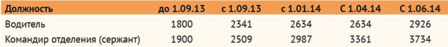 Напомним, первое повышение зарплаты военным было 1 апреля, следующее – 1 сентября, потом 1 января, 1 апреля и 1 июля 2014 года.