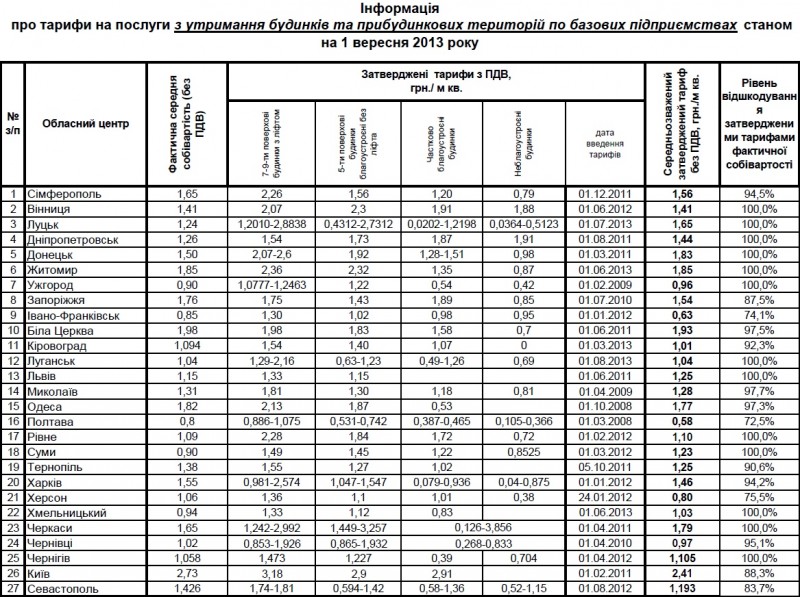 Так «средневзвешенный» тариф на эксрасходы в Полтаве до повышения составлял 0,58 грн, тогда как в Кременчуге – 1,73 грн.