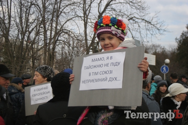 Кременчужане вышли на митинг в поддержку евроинтеграции, несмотря на запрет суда. 24 ноября, в 12.00, на ул. Ленина в районе памятника жертвам сталинских репрессий собрались около 200 жителей Кременчуга – они вышли на улицу, чтобы высказать своё мнение относительно резко изменившегося курса украинских властей.