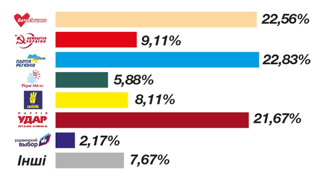 Окремо під час опитування у кременчужан поцікавились їхніми політичними уподобаннями. Тож якби вибори відбулися в грудні, у міськраді опинилися б три потужні фракції – Партії регіонів, «Батьківщини» й УДАРу. Зазначимо, що наразі там не представлена фракція прибічників Віталія Кличка. Також у Кременчуці зростає кількість прихильників «Свободи», яка випередила комуністів.