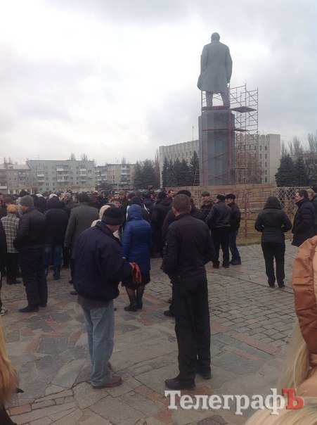 Около сотни кременчужан находятся на площади Победы. Голосовали за то, чтобы памятник свалить прямо сейчас, а не дожидаться завтрашнего дня и решения горсовета.