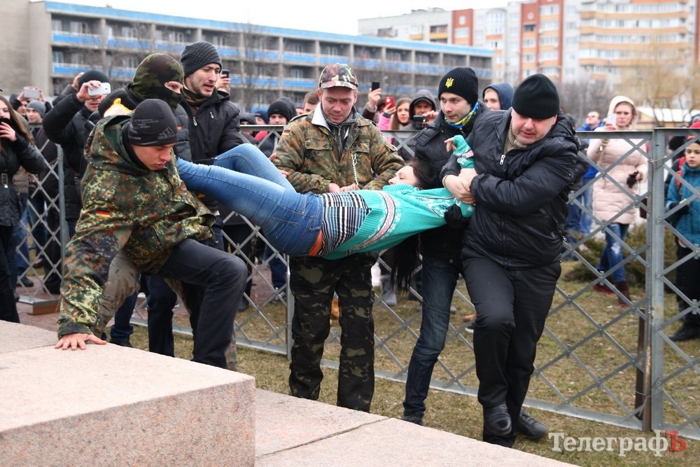 Также поступили и с Натальей Верещак, которая легла под постаментом. Она крикнула, что Ленин – вождь мирового пролетариата, больше о нем рассказать ничего не смогла. Она легла на ступеньки и скрестила руки на груди, но ее сразу приподняли и унесли на руках.