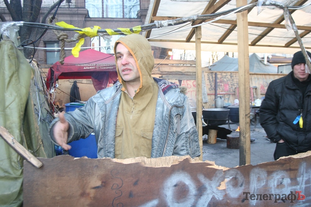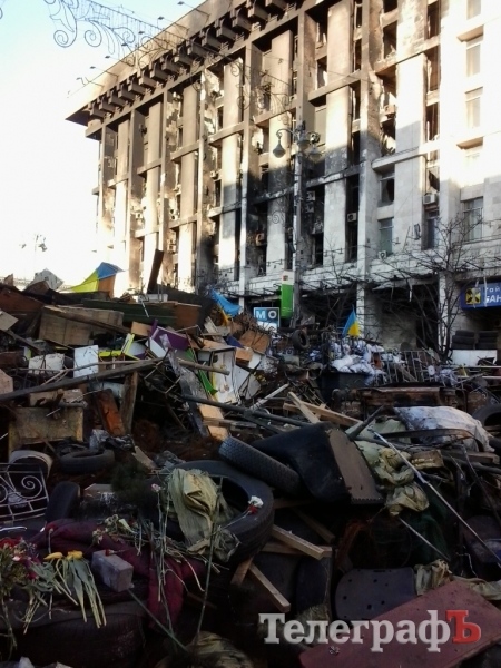 Где бы ты не стоял на Майдане, взгляд упирается в обуглившийся Дом профсоюзов. Огромная черная коробка, чётко виден очаг возгорания – где-то на уровне 4-5 этажа выгорели и рухнули все перекрытия, но на стене всё ещё висят неубиваемые кондиционеры. К этому обугленному зданию посреди Крещатика взгляд возвращается постоянно. Оно – результат позорной антитеррористической операции, объявленной бывшим министром МВД Захарченко и благословленной Януковичем. Дом профсоюзов жгли целенаправленно – там был Штаб национального сопротивления, кухни, госпиталь, продовольственные склады. Афганцы рассказывали, там сгорели бронежилеты и каски самообороны.
