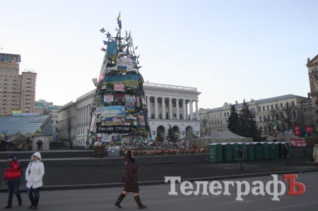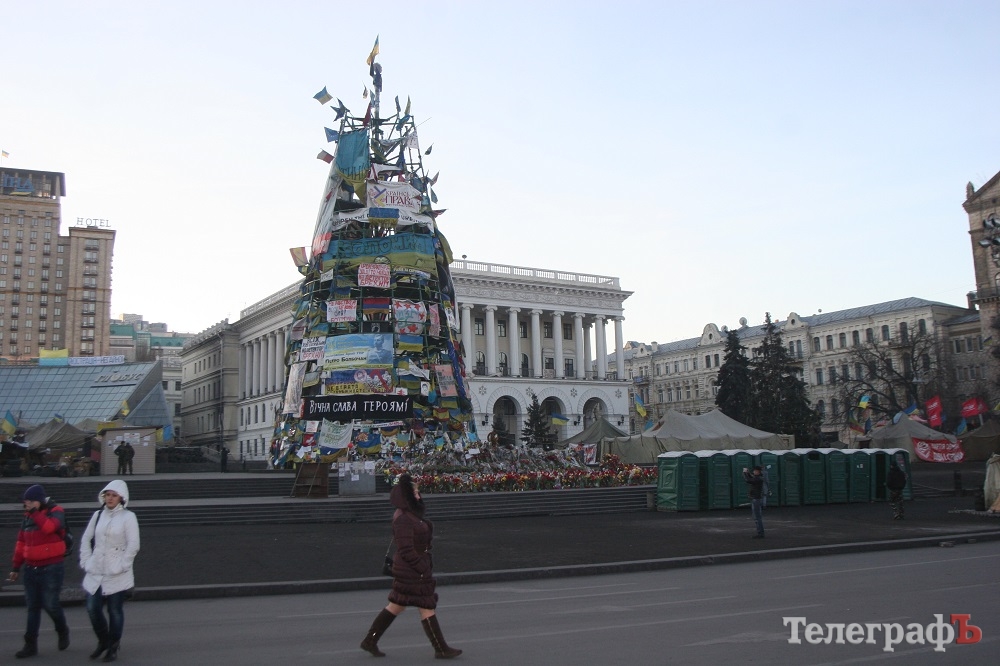 Туристы бродят по пустынному Майдану, вертят головами и фотографируют знаменитую Йолку – она ещё стоит. Портрета Тимошенко на ней уже нет – его сменил более уместный портрет Тараса Шевченко. Плаката «Кременчуг» тоже нет. Жаль.