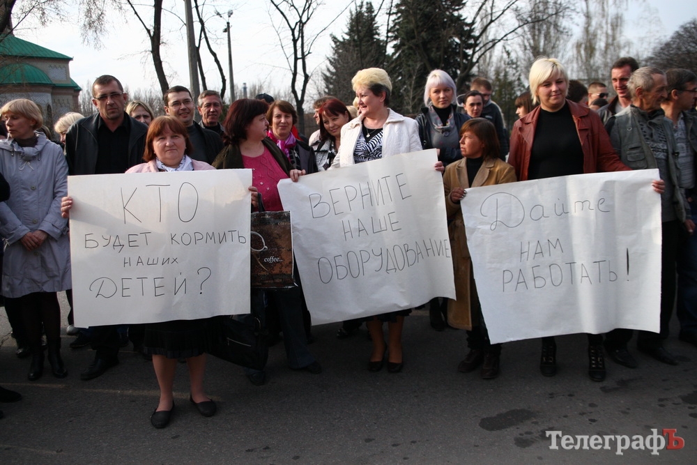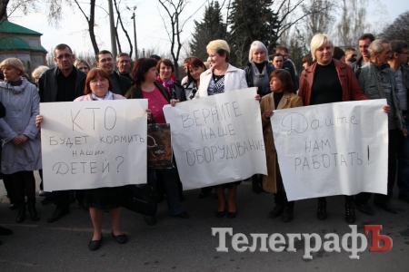 Работники Кременчугского ликеро-водочного завода сегодня пикетировали прокуратуру, требуя вернуть им работу. Как сообщил юрист предприятия Владимир Потемкин, ещё 28 февраля налоговая изъяла на предприятии часть оборудования — закручивающие головки.