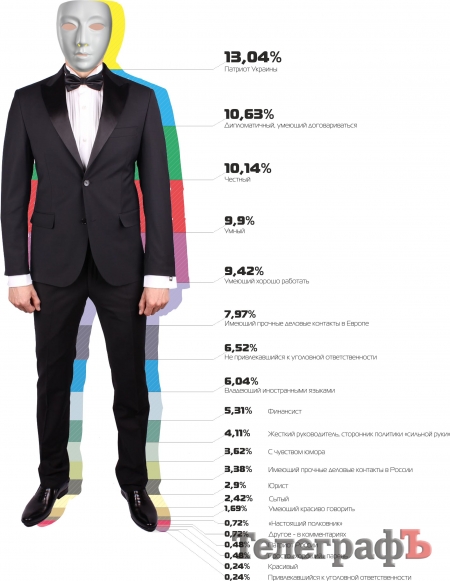 Судя по количеству претендентов, спрос на должность президента ажиотажный. Контингент баллотируется очень разнообразный – есть судимые и не судимые, патриоты Украины и патриоты России, люди с серьезным образованием и просто «хорошие парни». В связи с таким разнообразием претендентов, «ТелеграфЪ» предложил пользователям проголосовать на сайте и определить наиболее важные, на их взгляд, качества будущего президента.