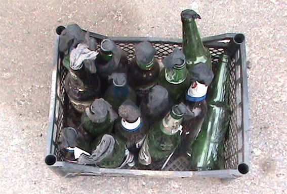 При осмотре транспортных средств у большинства пассажиров правоохранители обнаружили и изъяли предметы и средства, которые могли быть использованы для агрессивных действий в условиях массовых акций. А именно: три револьвера и патроны, травматический пистолет, спецсредство травматического действия «Сталкер» и патроны к нему, пластмассовый ящик с бутылками из-под пива в количестве 15 шт. с веществом черного цвета, 13 ножей, 12 саперных лопаток, 10 шлемов, 9 щитов, 4 газовых баллончика, 3 металлические палки, а также металлический топор, телескопическую дубинку, электрошокер, деревянную палку.