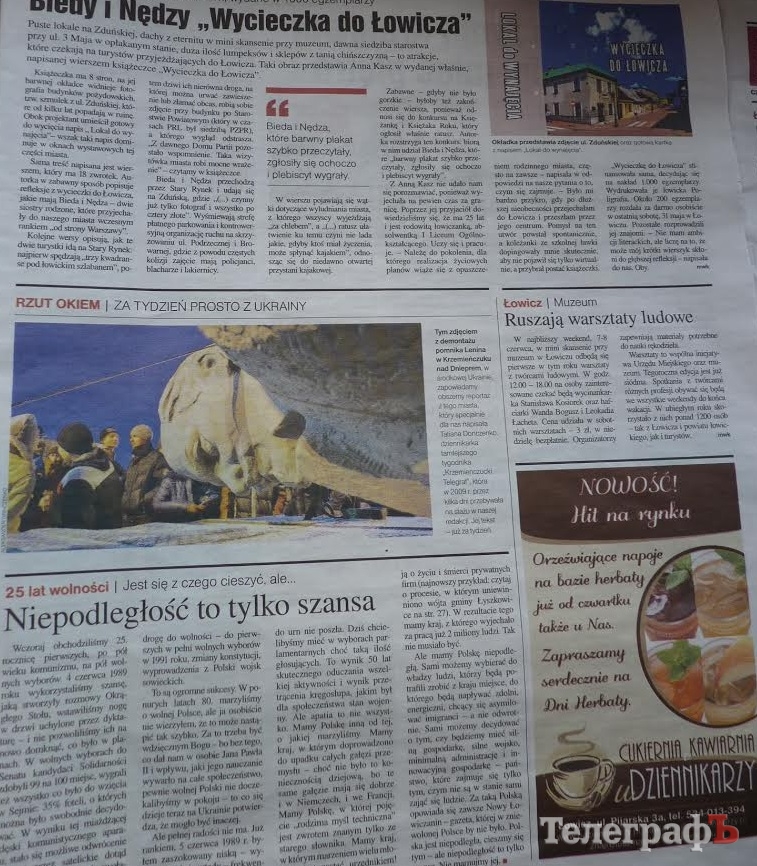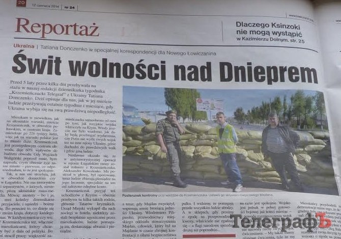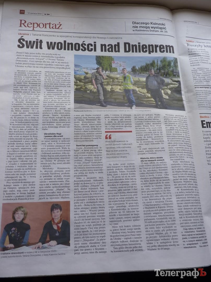 Польская газета «Новый Ловечанин» (г. Ловеч) опубликовала материал о том, как жил Кременчуг во время событий, связанных с Майданом и живет сейчас, когда идут бои на востоке страны. Такой материал редактор и издатель польской газеты Войтек Валигорский попросил у нашего журналиста Татьяны Донченко, которая была на стажировке в Польше в 2009 году.