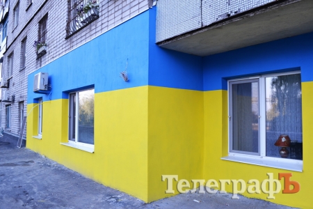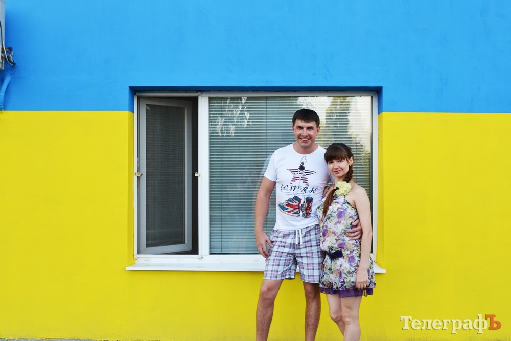 В Кременчуге на Первой Занасыпи семья Савиных, Андрей и Татьяна, утеплили стену дома и покрасили ее в национальные цвета.