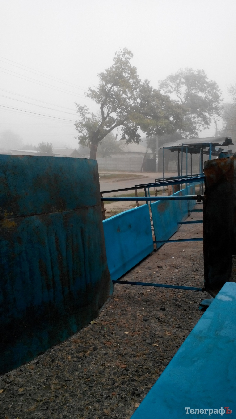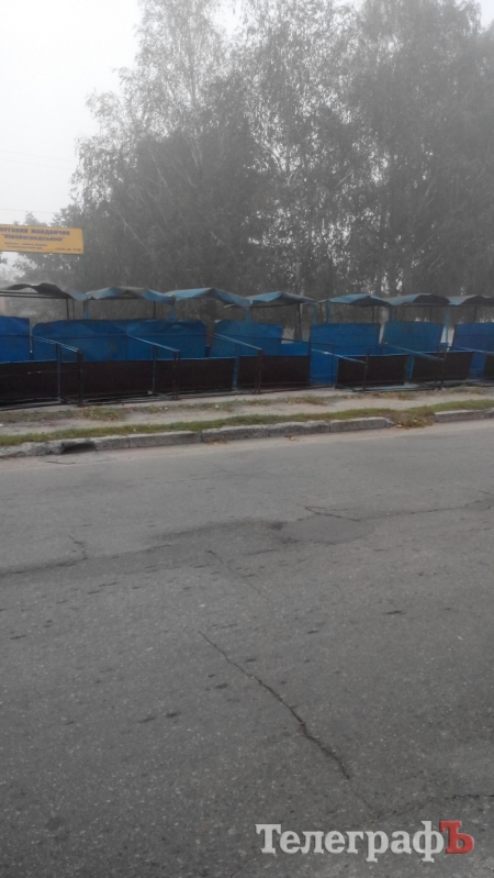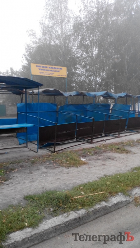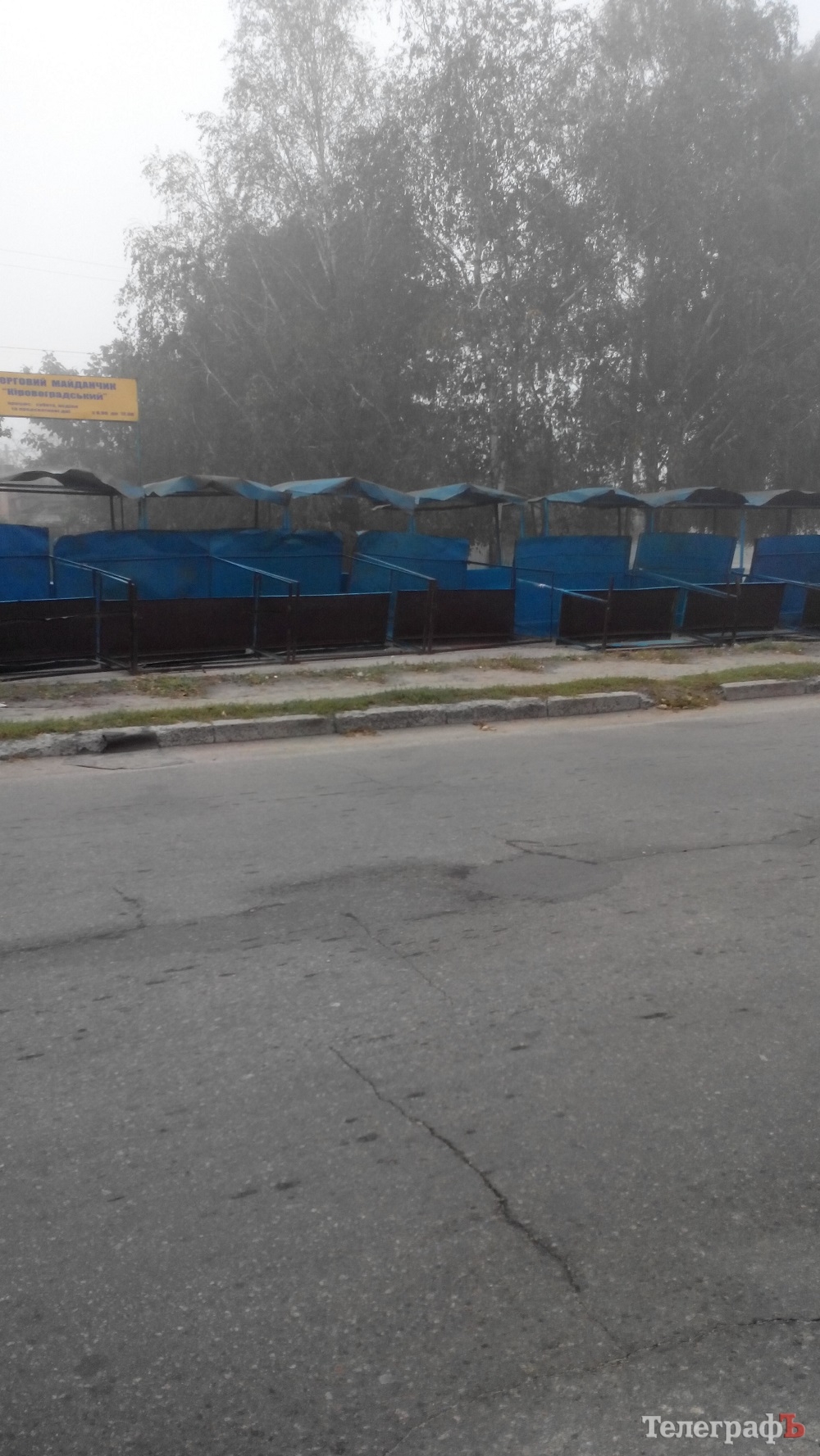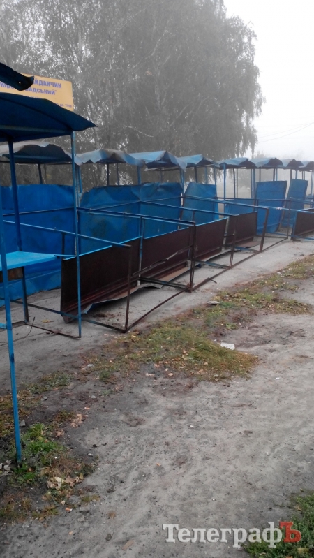 Остановка "Кировоградская" в Крюкове. Мини-рынок: металлические столики с навесами, которые не были закреплены, свалила стихия: