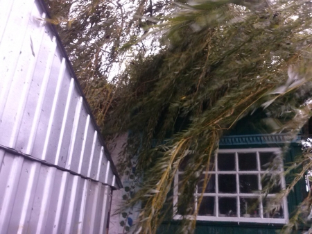 В 16.00 жители Первой Занасыпи сообщили, что на микрорайоне сорвало часть навеса с остановки общественного транспорта "Афины", поразбрасывало ветви от деревьев.