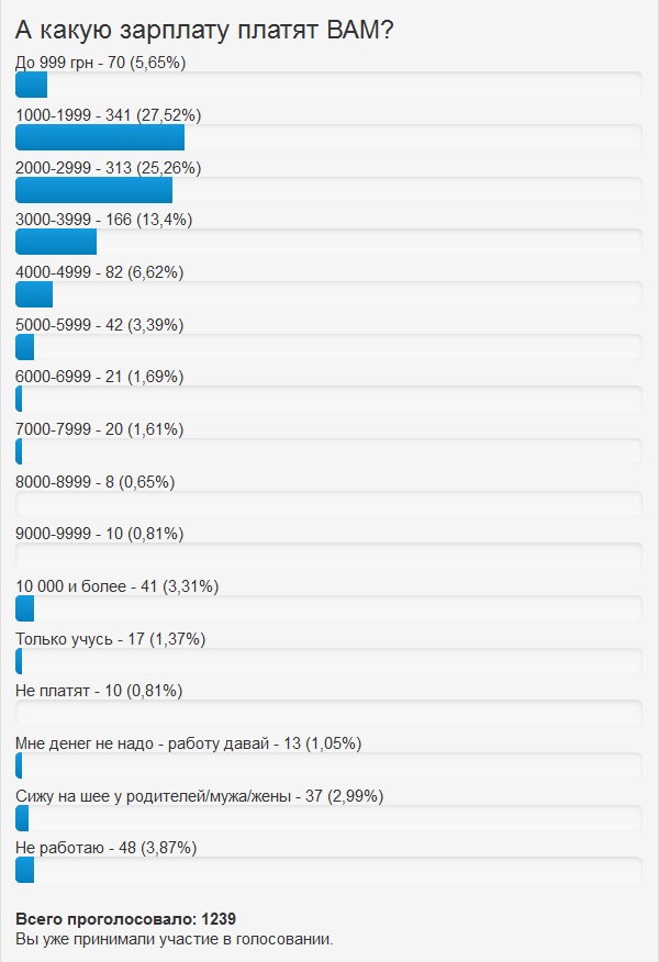Доллар, отпущенный в ноябре в «свободное плаванье», резко рванул вверх, обесценив тем самым и так невысокие доходы украинцев. Если год назад средняя зарплата кременчужанина приравнивалась к $442 долларам, то сейчас это $209 долларов. И это при том, что реальная зарплата зачастую ниже средней, которую высчитывают управления статистики. Например, после голосования на сайте telegraf.in.ua выяснилось, что большинство его посетителей получает до 2 тысяч гривень. А тех, чей доход выше 3 тыс грн – всего 13%.