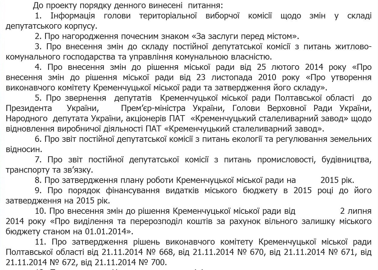 11.50 Депутаты рассматривают обращение к Яценюку и Демчишину по поводу отключений электроэнергии. О причинах отключений и об их порядке проинформировал начальник Кременчугского филиала «Полтаваоблэнерго» Сергей Андриевский.