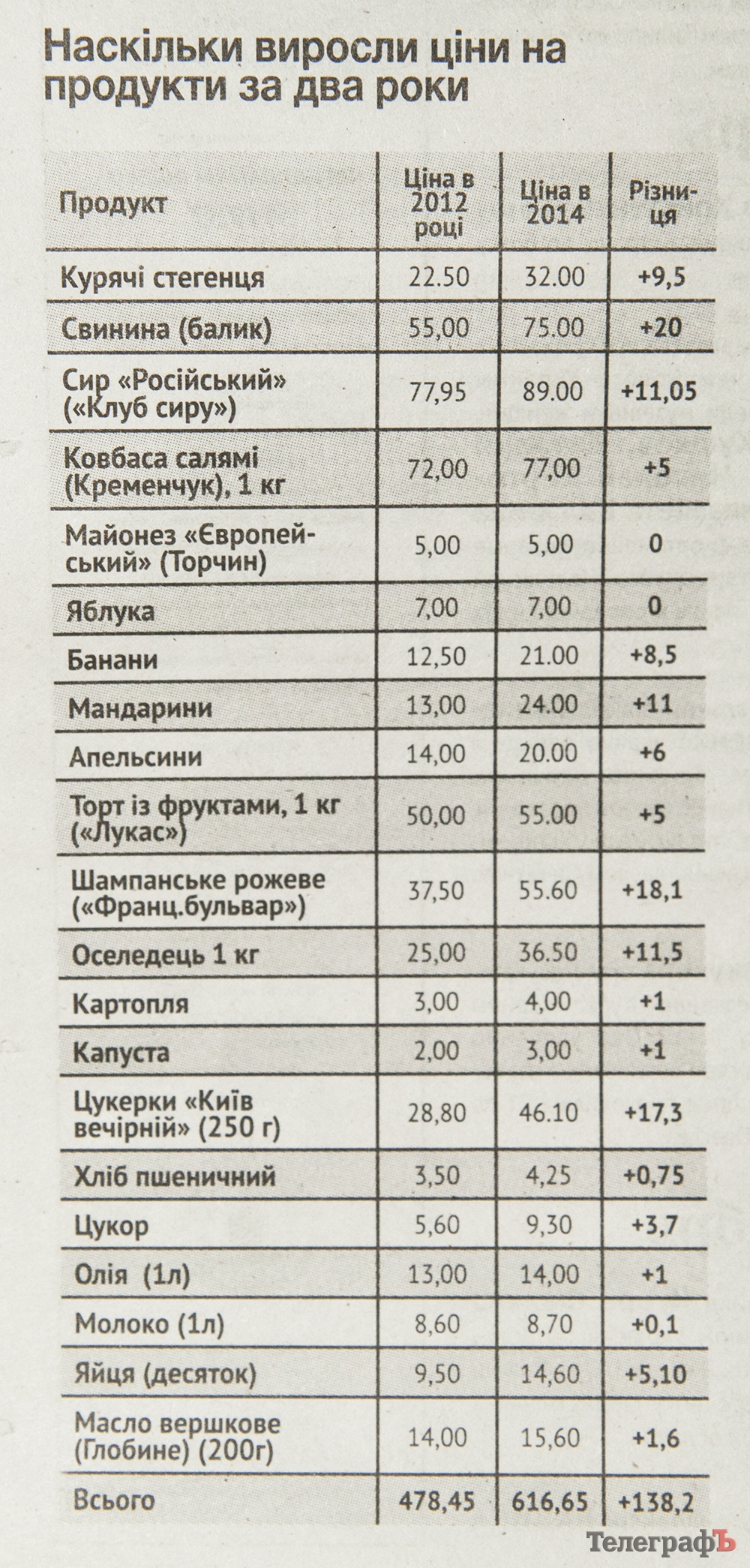 «ТелеграфЪ» порівняв неспокійний 2014 рік зі спокійним 2012 – вийшло майже на третину більше грошей на харчі