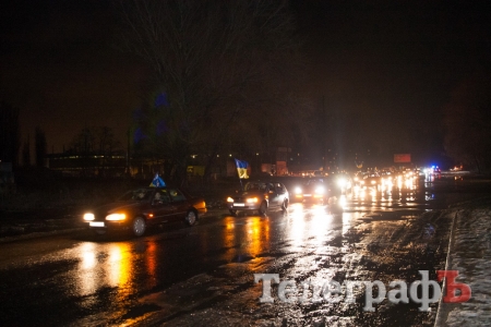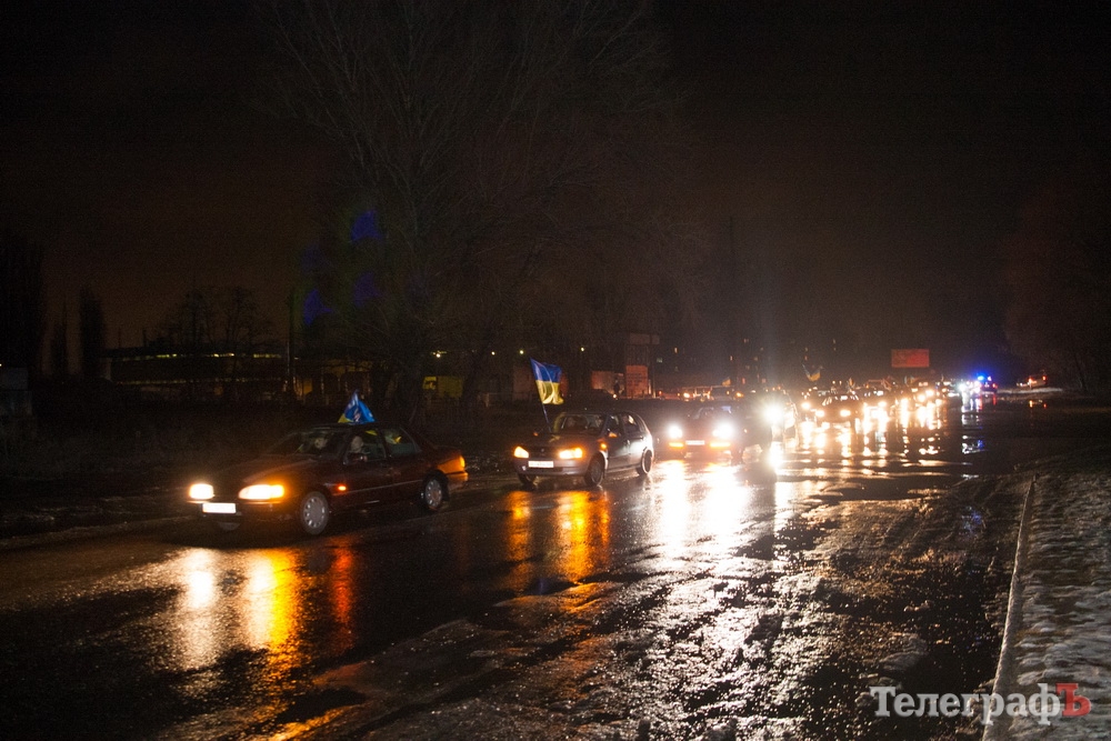 На въезде в Кременчуг 30 января около 100 автомобилей встретили машину с погибшим в зоне АТО 35-летним Анатолием Билоусом. В 21.20 колонна двинулась в город. Автомобили с символикой Украины ехали по улицам с небольшой скоростью и сигналили. Колонна растянулась на полтора километра. Многие горожане, не имея возможности быть в колонне, ждали кортеж на улицах с флагами. Прохожие останавливались и кричали "Слава Героям! Слава Украине!"